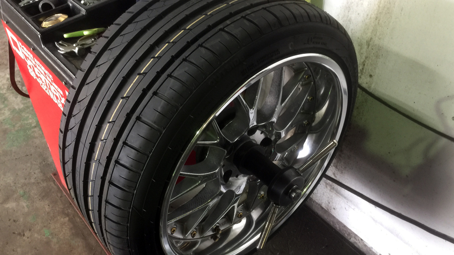 スープラのホイールWEDS KRANZEに新品タイヤを組むことにした。ホイールはフロント8.5J インセット26、リア9.5J インセット30。タイヤはフロント235/45R18、リア255/40R18。扁平だからタイヤの脱着も大変そう。やってみたら案の定大変。4本のタイヤを外すころには体力が残っていない状態。バランスは後日に後回し。